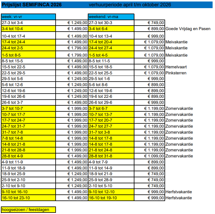 Weekverhuur: aankomst vrijdag om 15.00 uur tot vertrek vrijdag 12.00 uur